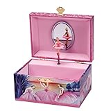 Ballerina twirls when opened ? Box shimmers in light ? Plays "Swan Lake" ? Comes packaged in clear PVC box. 5.75" wide.