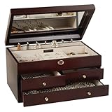 (More customer reviews)This jewelry box is great. It's big and arrived in good condition but i think that was all luck. It was packed in a light weight box, slid inside a thicker shipping box but there was no padding involved to protect this in either. I think it was pure luck that this arrived through the hustle and bustle of holiday shipping undamaged.