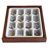 Get your jewelry drawer organized with this stylish and innovative Stack 'em Wood Jewelry Organizer (model 2701), featuring 16 small compartments that accommodate rings, earrings, pins, or cuff links. Measuring 9-1/8 by 8-1/8 by 1-3/8 inches (LxWxH), it's perfectly sized for the inside of a drawer or on top of the dresser. Handcrafted from natural hardwood, the box has a warm maple finish that is coated with a clear lacquer finish to preserve the wood's natural beauty as well as allow for easy cleaning. The tray has a velvet-like flocking that helps prevent scratches and tarnishing.