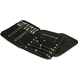 New Black Faux Leather & Velvet Ring, Bracelet, Watch, Earring & Chain Display Case. This is a new black faux leather & velvet ring, bracelet, watch, earring & chain display folder with a pullout handle. Store and protect your samples in this compact professional portfolio as you travel. With this folder you look as if you are carrying papers rather than jewelry. This has 8 chain tabs with elastic straps to hold down necklaces, 3 snap close ring bars, 2 snap close earring strips and 5 elastic bracelet selections. The interior is black velvet and it has a vinyl covered foam insert and has a black faux leather exterior. Measures approximately 10" x 14" (254 x 355 mm) closed.