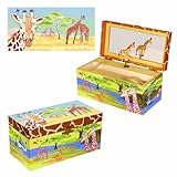 Nice and deep with a removable tray, it's the best chest for keeping jewlery, collectables, photos or just about any precious find. Comes with giraffe figurine and plays "Around the World in 80 Days".