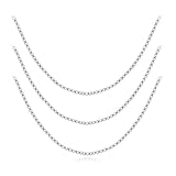 This set of three sterling silver box link chains gives you excellent versatility. Layer them together, or wear them individually as they suit your neckline. The slender and strong chains are perfect for showcasing a favorite pendant. They measure 18, 20, and 24 inches in length and are finished with spring ring clasps.