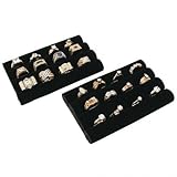 2 Black Leather Ring Tray Jewelry Pad Showcase Display. This is a new set of 2 black velvet 3 row continuous slot black velvet tray inserts. With these inserts you are able to keep your rings organized and visible. Easily remove the tray from the showcase to allow customers to view your jewelry from the countertop. Each measures approximately 5 1/2" x 3 1/2" (140 x 89 mm).