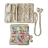 Click Here to see more reviews about: Silky Embroidered Brocade Jewelry Travel Organizer Roll Pouch - Champagne Gold