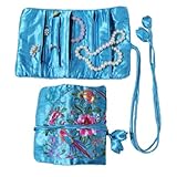 Click Here to see more reviews about: Silky Embroidered Brocade Jewelry Travel Organizer Roll Pouch - Turquoise Blue
