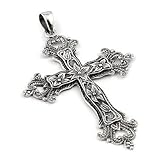(More customer reviews)This cross arrived in excellent condition and beautifully packaged.It is of good size and a nice weight. It has a lovely detailed design that is clear and well balanced for the piece. It is very versatile in the way that it can easily be worn with cording, ribbon, or chains and therefore can be dressed up or down. It is really a wonderful value for the price and I wear it proudly because of it's beauty, and humbly because of it's religious significance to me.