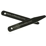 This set of 3 pairs of metal collar stays will come in handy for the organized modern gentleman. There is nothing worse than a handsome shirt with collars that curl. The stays are brass with a rhodium silver coating and feature the Cuff-Daddy logo. Each set includes one pair of 3 different sizes (7cm, 6.5cm, 6cm long). Each size is ideal for different types of shirt collars. All are 3/8" wide, the perfect width for your shirt collars. Its size also allows it to be perfectly hidden out of sight when it is fitted underneath your shirt collars. This is a great addition to every working man's wardrobe.<