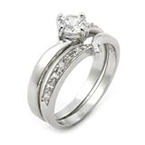 This Wedding Ring Set is Solid Sterling Silver and Nickel-Free.The Engagement Ring is Set with a 6mm Brilliant Round White CZ and Accented with Small White CZs Down One Side.The Matching Wedding Band is Set with Brilliant White Round Cubic Zirconias Down the Opposite Side.