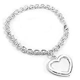 This Sterling Silver Charm Bracelet is 7.5" Long and 5mm Wide.There is a 3/4" x 13/16" Heart Shaped Picture Frame Attached to the Bracelet Which Will Hold One Photo.The Bracelet Closes with a Lobster Claw Clasp, Weighs 12 Grams, and is Marked .925.