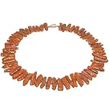 HG's Stonehenge necklace in flame red is a stylish piece that is anything but your average pearl necklace. The blaze of red and burnt orange hues on these uniquely shaped pearls is sure to catch eyes. This necklace is handcrafted from stunning biwa-style freshwater pearls. Each pearl is hand knotted on matching fine thread and the necklace is finished with a sterling silver clasp. Free Stonehenge Pearl Earrings: For a limited time, receive a complimentary pair of matching flame red pearl drop earrings on sterling silver posts with the purchase of a HinsonGayle Stonehenge pearl necklace.